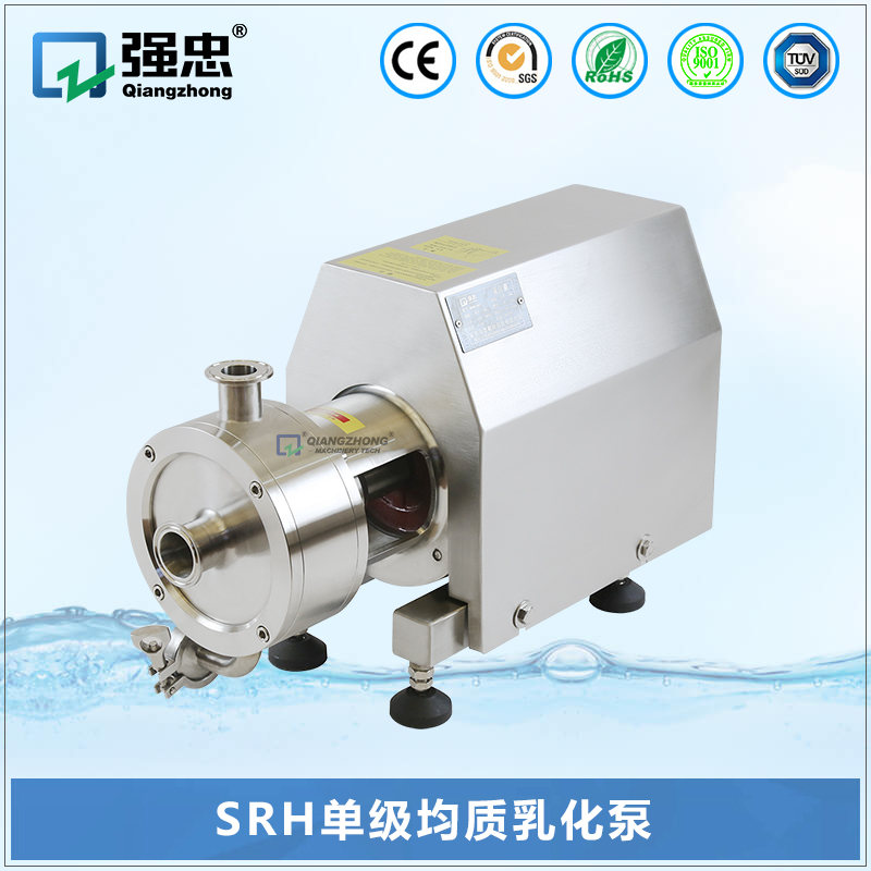 均质乳化泵/管线式高剪切分散乳化机是高效、快速、均匀地将一个相或多个相分布到另一个连续相中,而在通常情况下各个相是互不相溶的。由于转子高速旋转所产生的高切线速度和高频机械效应带来的强劲动能,使物料在定、转子狭窄的间隙中受到强烈的机械及液力剪切、离心挤压、液层摩擦、撞击撕裂和湍流等综合作用,从而使不相溶的固相、液相、气相在相应成熟工艺和适量添加剂的共同作用下,瞬间均匀精细的分散乳化,经过高频的循环往复,最终得到稳定的高品质产品。